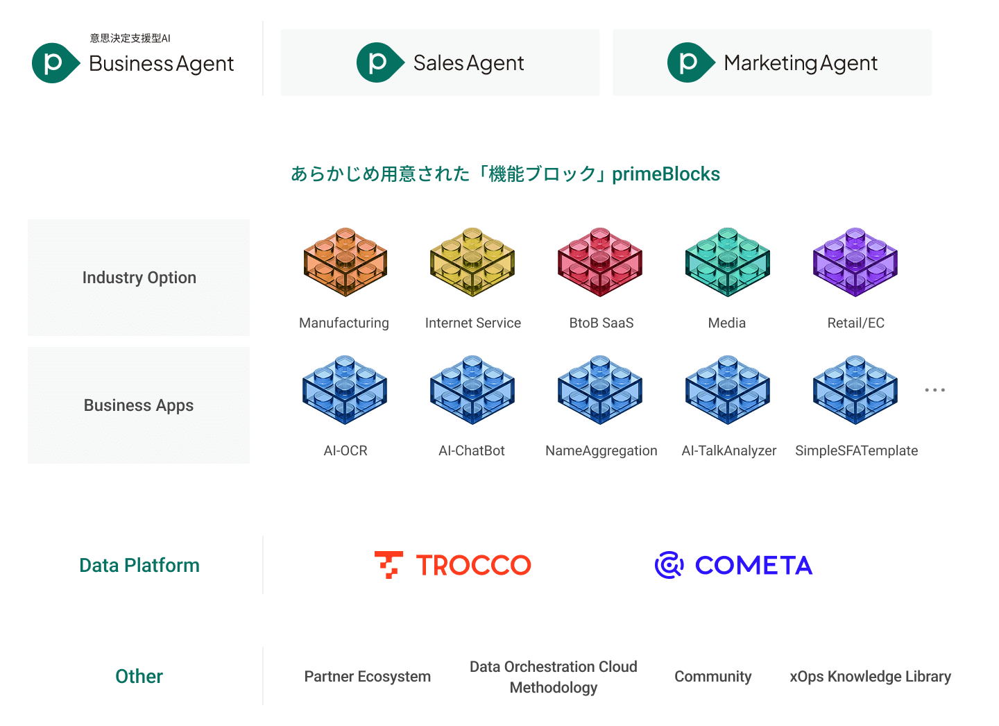 それは、primeNumberが独自に開発したDX/AIソリューションを素早く提供するための基盤「primeBlocks」があるからです。