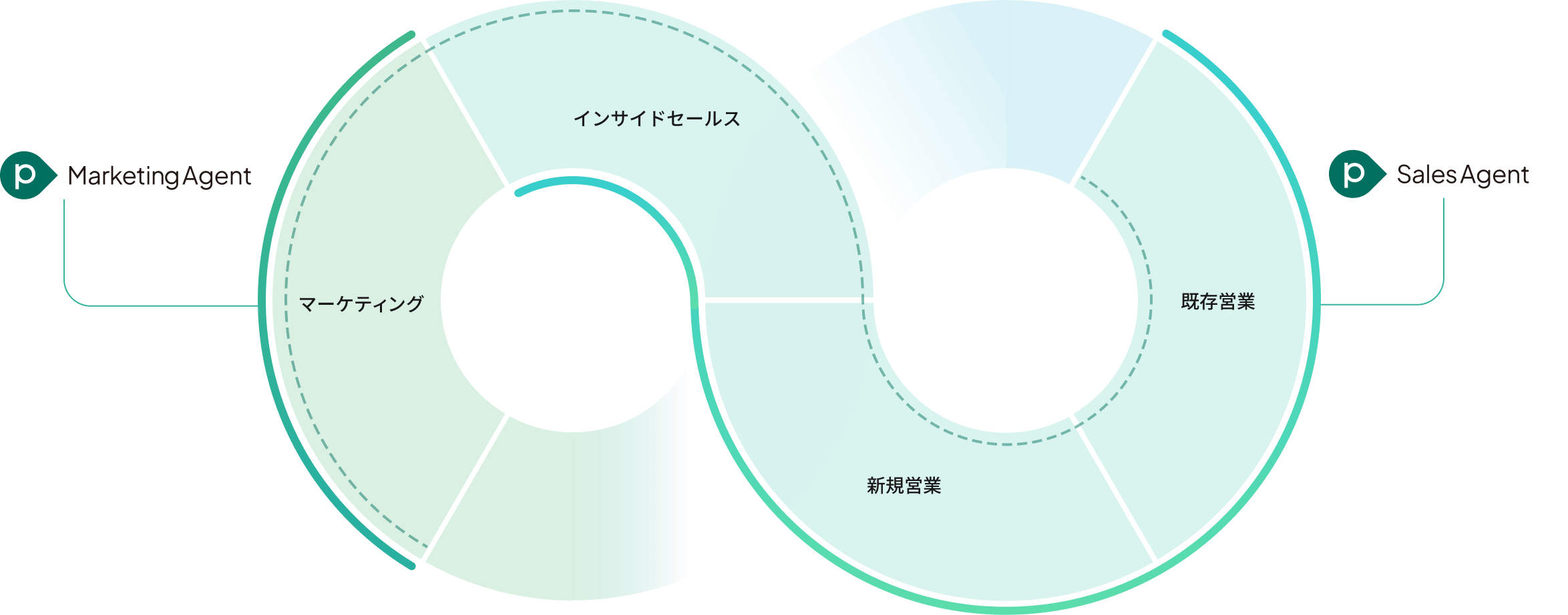 サイロ化しがちな複数の業務部門を繋ぐ役割primeNumberはRevOps(レベニュー組織全体で収益最大化を目指す取組)というビジネステーマが注目を集める前からレベニュー組織(マーケティング・営業・カスタマーサクセス)をデータで繋げ収益最大化を目指すご支援を行ってきました。primeBusinessAgentは複数の部門でご活用いただくことでより部門横断で成果の創出効果が期待できます。