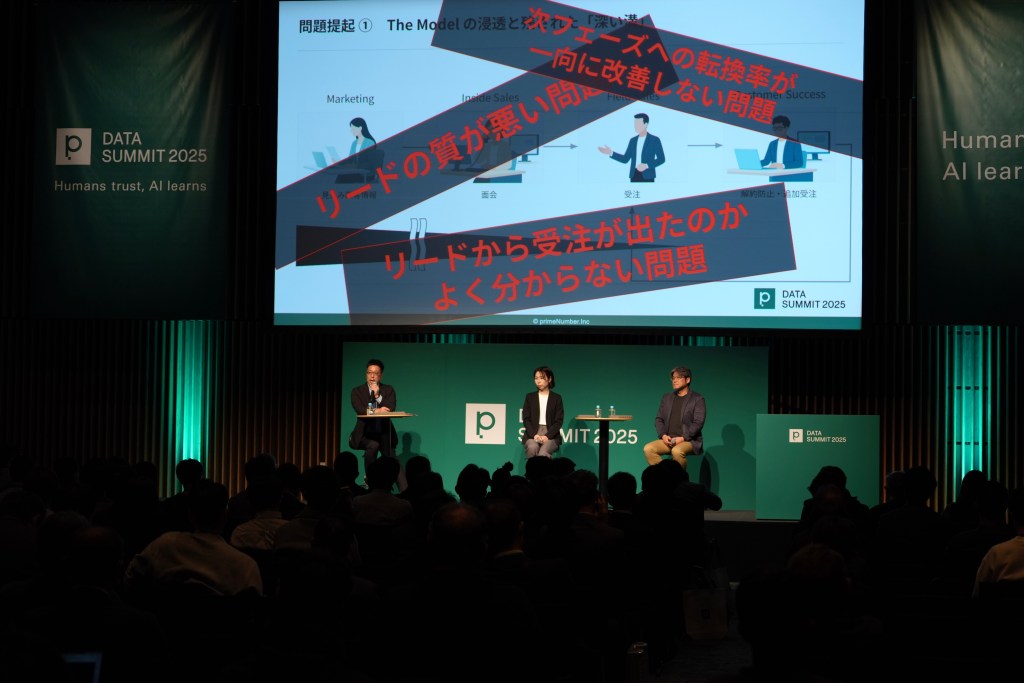 「primeNumber DATA SUMMIT 2025」では、RevOpsの最前線に立つ株式会社ZAICO マーケティング&PR部 部長の川島沙絵氏、株式会社ヌーラボ 取締役の小島英揮氏、株式会社primeNumber 執行役員マーケティング本部VPの濱本秋紀が登壇。