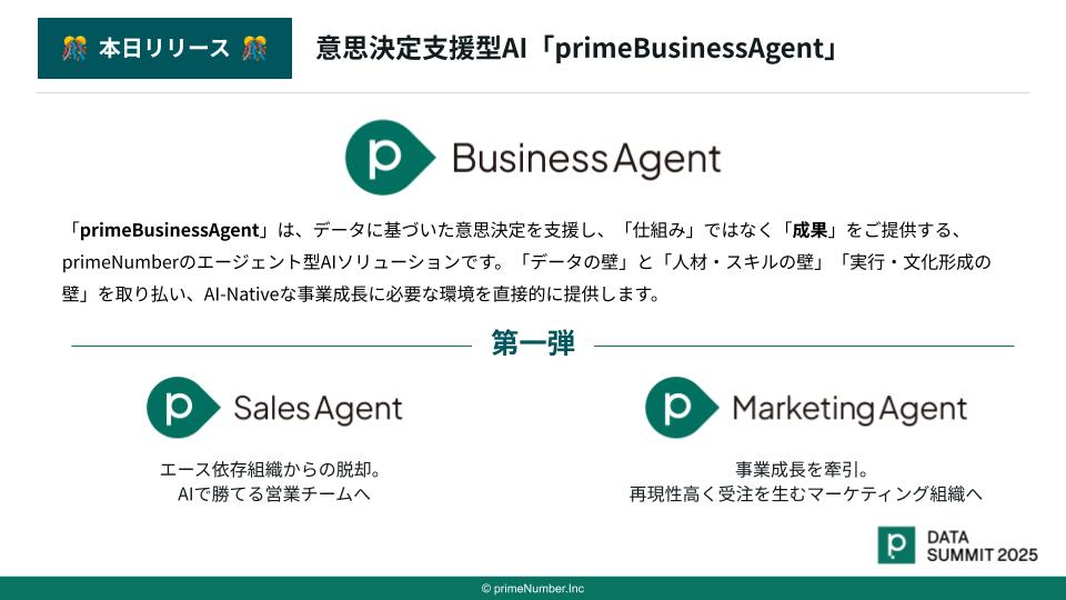 primeNumberでは、イベント同日に意思決定支援型AI『primeBusinessAgent』を提供開始しました。