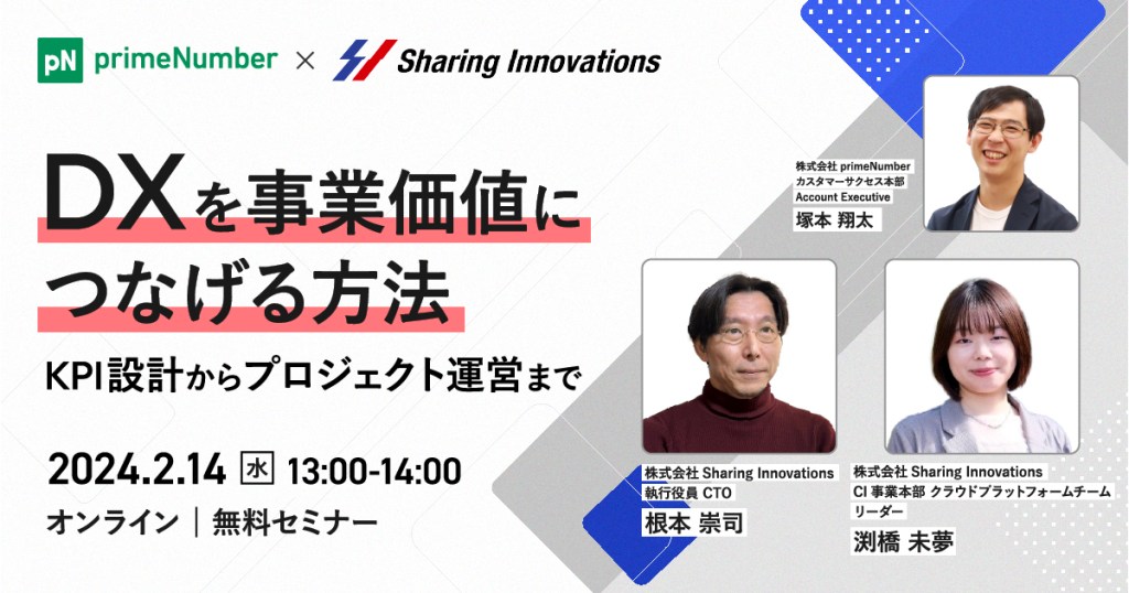 イベントレポート2024.5.16【株式会社Sharing Innovations × primeNumber + TROCCO®】DXを事業価値につなげる方法~KPI設計からプロジェクト運営まで~データ分析TROCCO