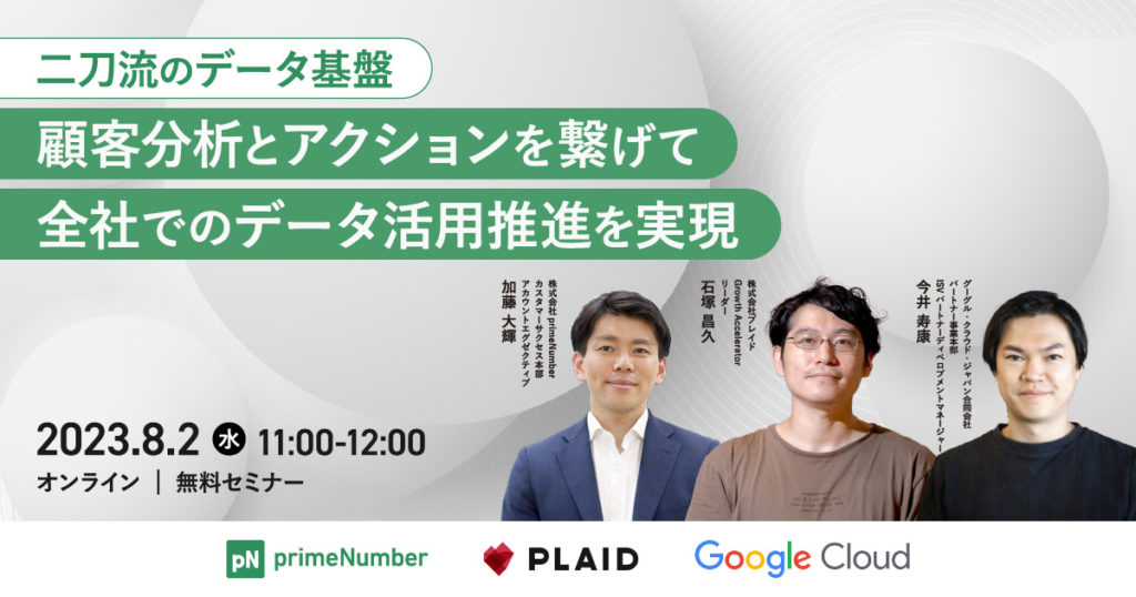 今井氏:「本日のセミナーでは二刀流データ基盤について詳しく解説します。具体的には、顧客分析とアクションをどのように繋げてデータ活用を全社的に推進するかについて説明します。」