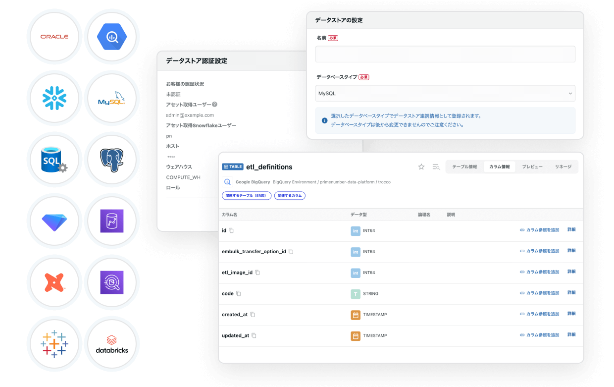 テーブルやカラムのメタデータやスキーマを即座に確認でき、どんなデータが格納されているかプレビューができます。