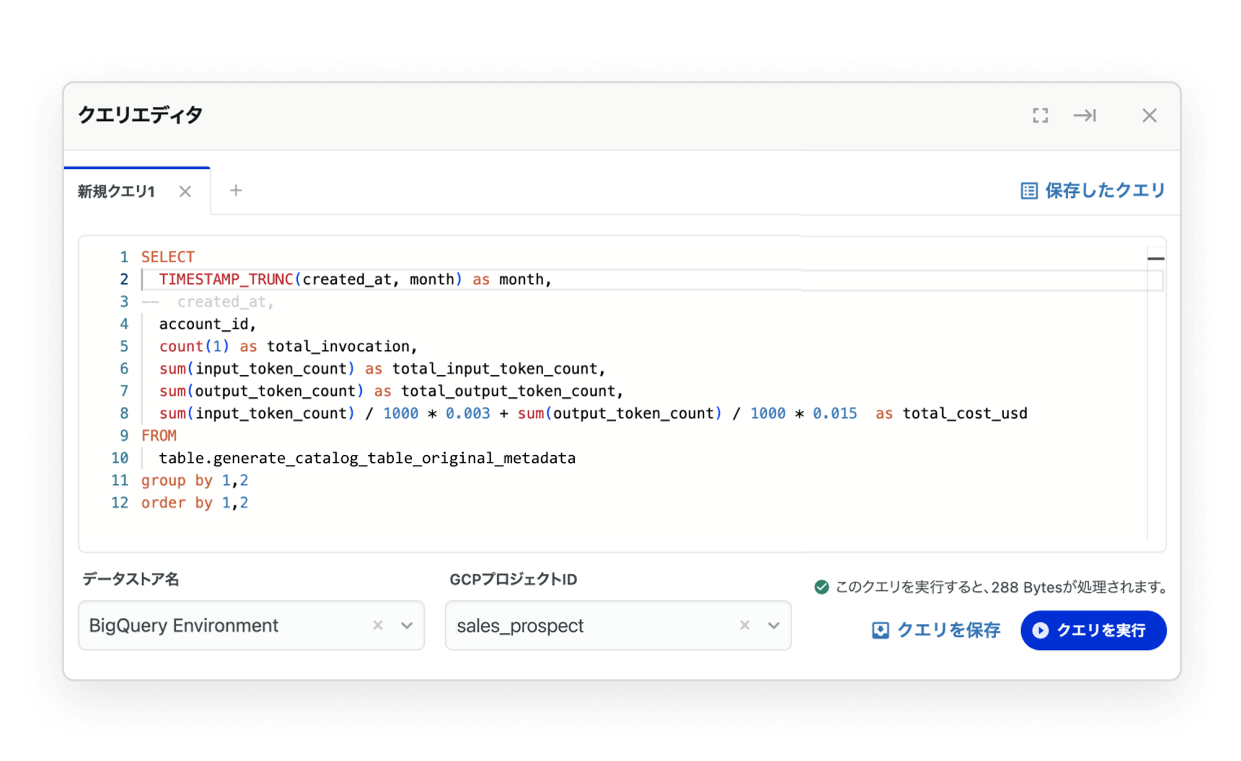 テーブル詳細画面からクエリエディタを立ち上げることが可能で、プレビューされたデータやカラムの詳細情報を見ながらSQLを書いて実行でき、データストアの切替にも対応しており、その場でアドホックな分析を迅速に行うことができます。