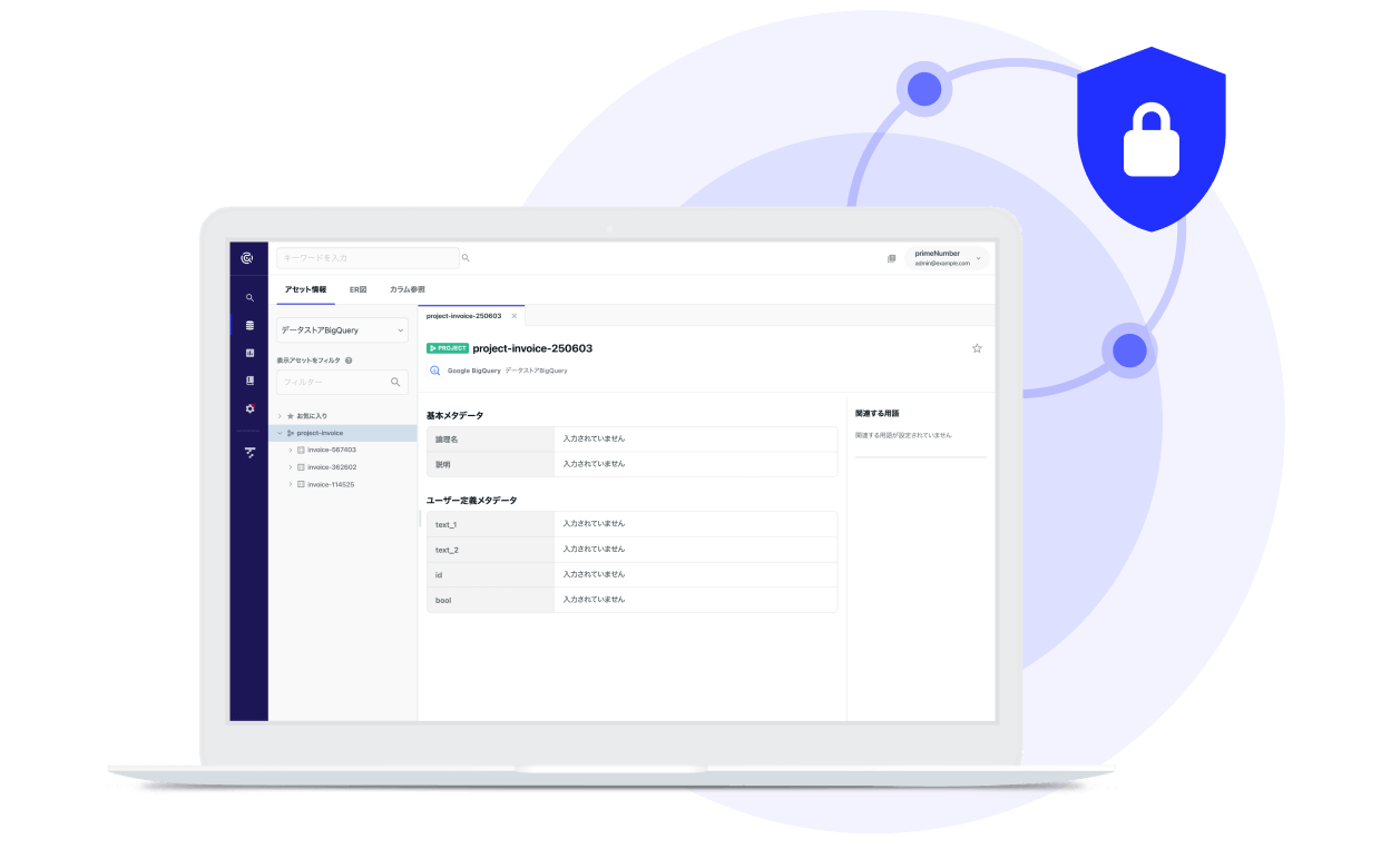 属人的なデータ管理による統制のばらつきを、データ分類やオーナー情報などのメタデータの一元管理により整合性や正確性の維持を実現し、データガバナンスの運用を日常業務の中で無理なく実現します。
