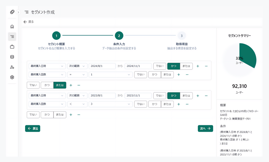 マーケ施策や分析に使える“顧客セグメント”をGUIで直感的に作成。