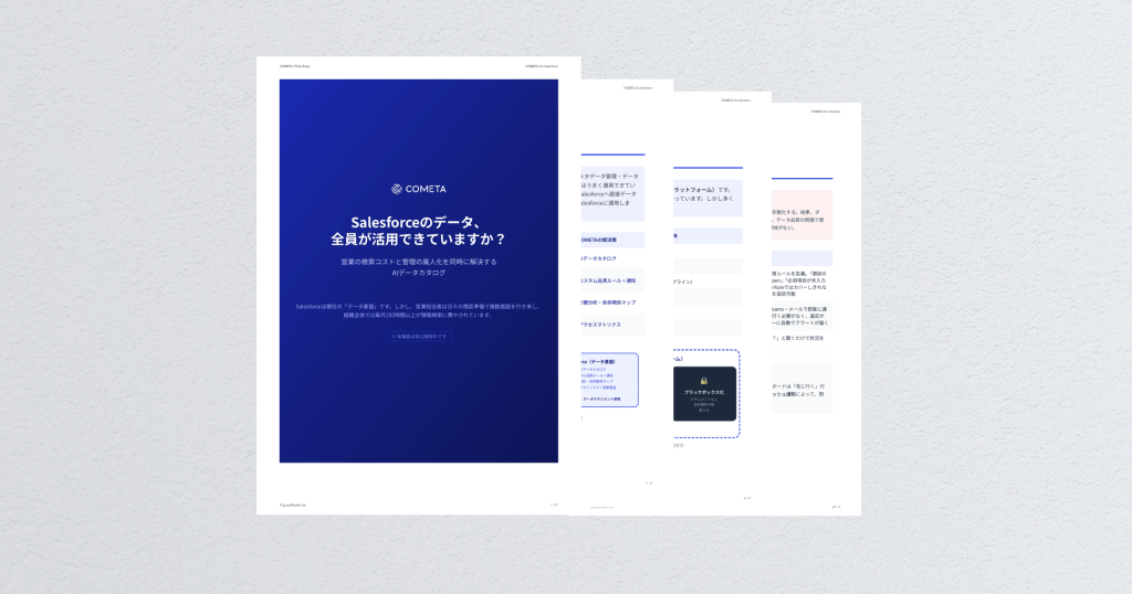 本資料では、DWHを導入せずにSalesforceへ直接データカタログを接続し、これらの課題をAIデータカタログによって解決する方法をご紹介します。